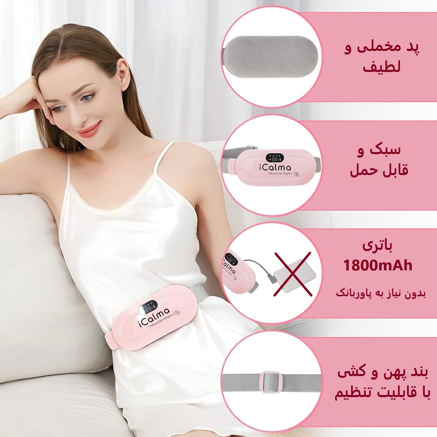 چه در خانه باشید، چه در محل کار، چه رانندگی یا بیرون از منزل، پد گرمای قابل حمل قاعدگی iCalma همراه نهایی شما برای تسکین درد دوران قاعدگی است. از گرما و آرامش در هر زمان و مکان لذت ببرید!